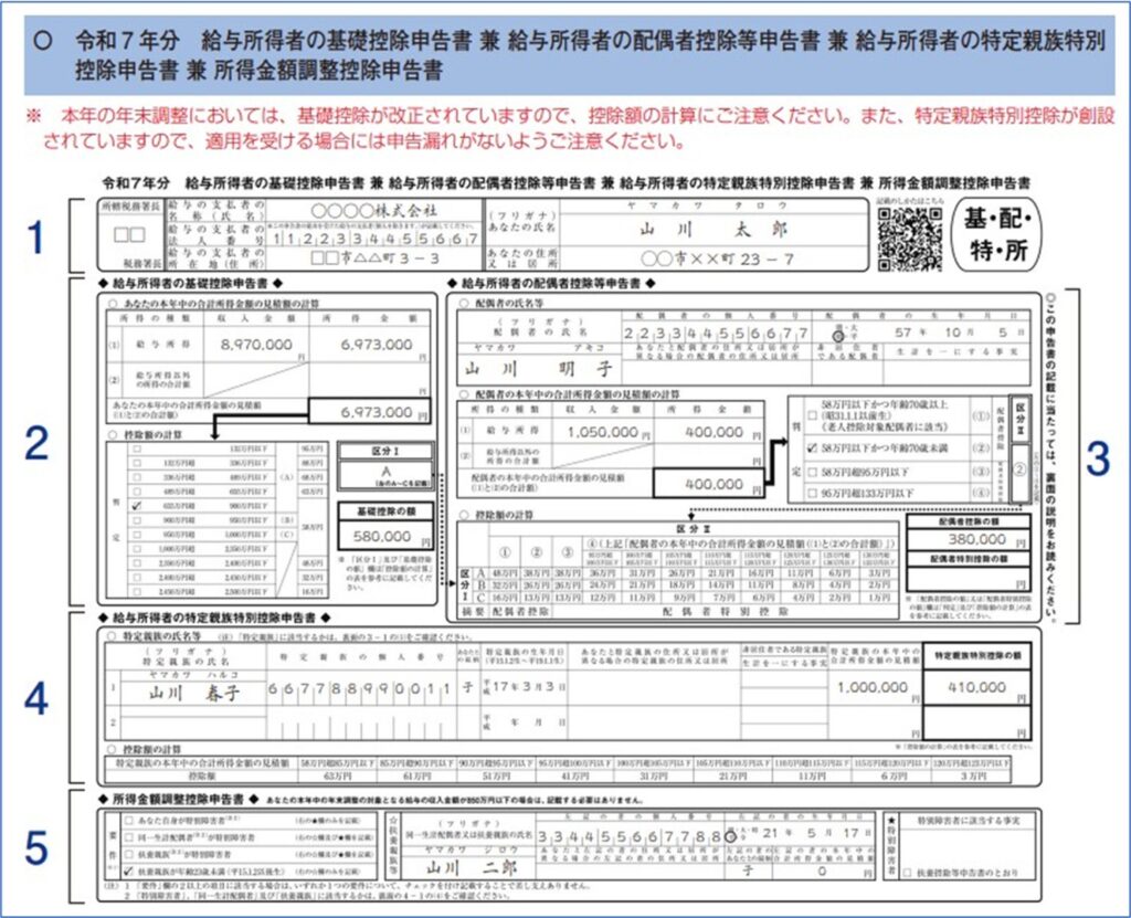 「給与所得者の基礎控除申告書 兼 給与所得者の配偶者控除等申告書 兼 年末調整に係る定額減税のための申告書 兼 所得金額調整控除申告書」にはいろいろな情報を記入しなければなりませんが、順番に進めていけば問題ありません。